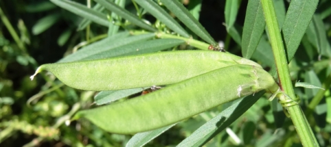 Ne pas confondre avec certaines Fabacées ornementales ou espèces mal identifiées. Toujours vérifier : Présence de vrilles terminales Fleurs violettes typiques Gousses fines et allongées En cas de doute : abstention.
