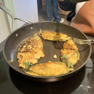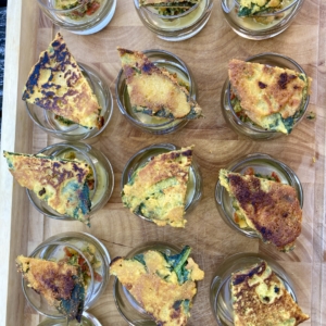 Une version croquante (vegan et sans gluten) des beignets de consoude classique, ici présentée comme support pour une salsa des tomates à la consoude, pour gouter la plante crue et cuite.